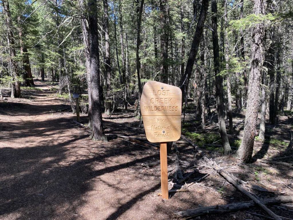 Near the intersection of the Wigwam Trail and Lost Creek, I passed a couple who muttered that I had a long way to go. Weird statement since they had no idea where I was going, and the Lost Park campground was just 3 miles away. Perhaps I misunderstood them. I think it is best to look them in the eye, be friendly, and greet them. Trying to carry on a conversation while walking in opposite directions is futile.