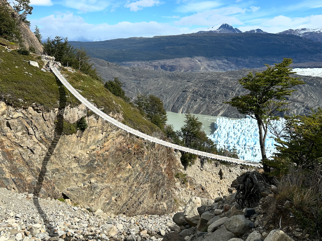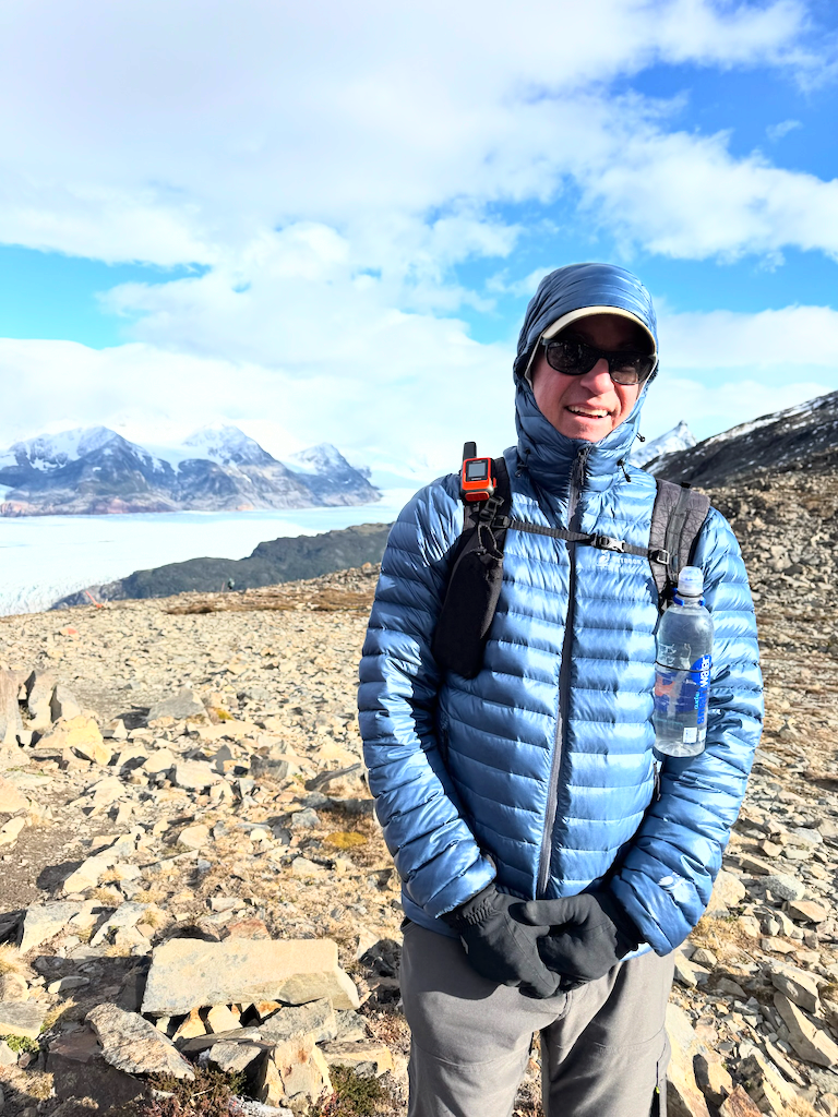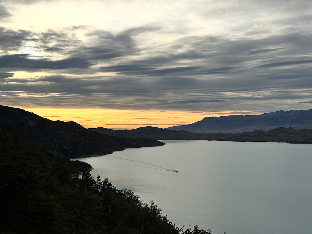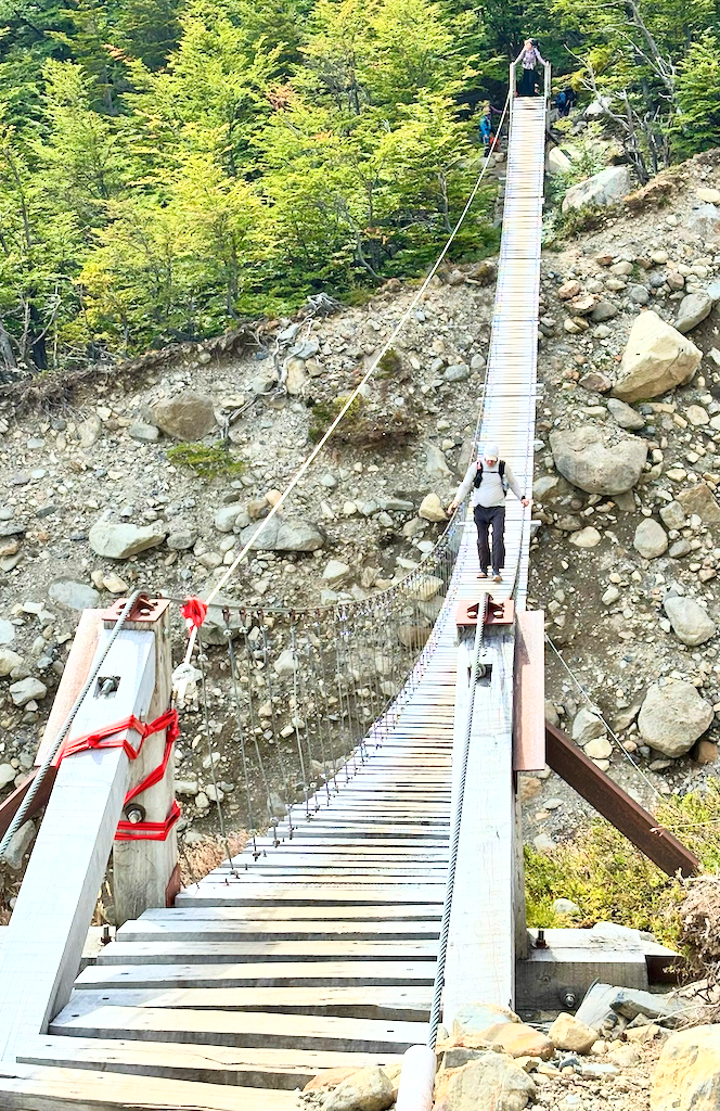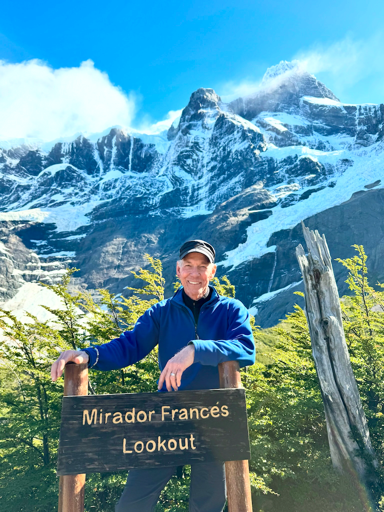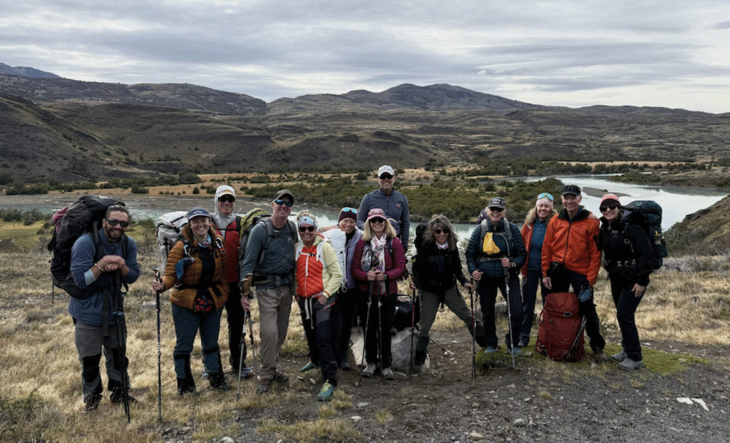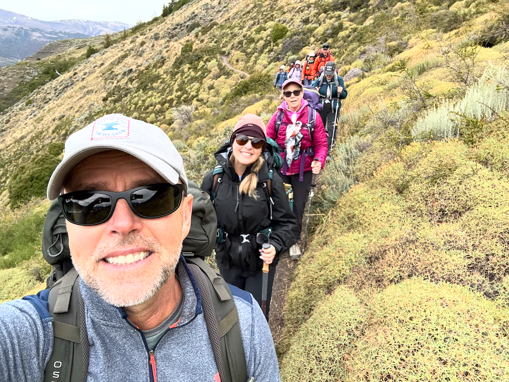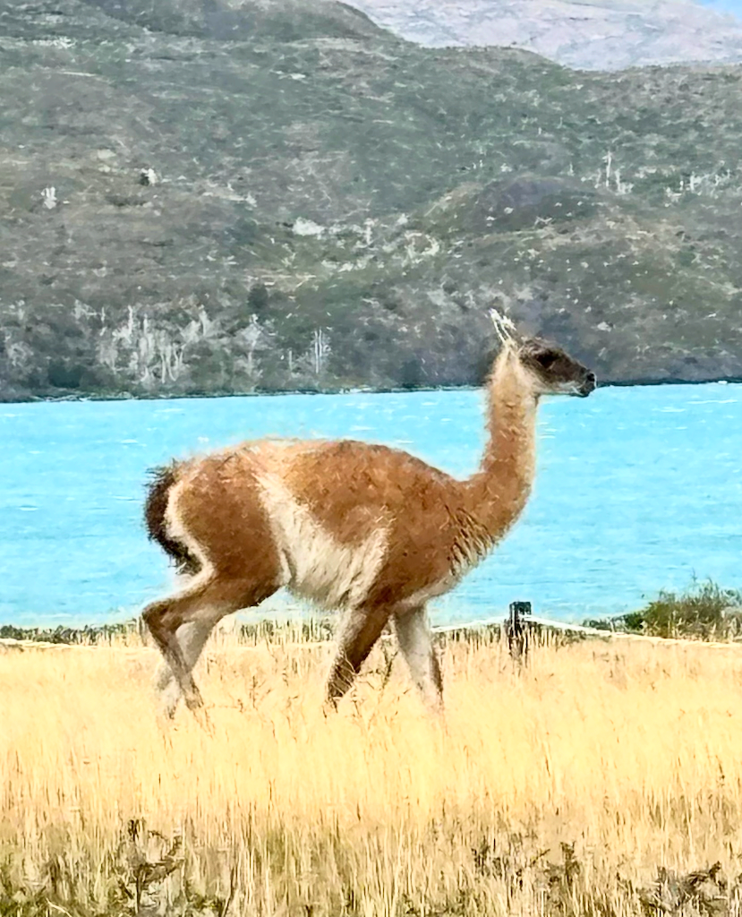 We met our guides at the hotel. Natu (Natalie) and Ivan were very knowledgeable about the animals, fauna, history, geology, and fun. Their first priority was safety and building trust in the team.On the way from Torres Central to Seron Refugio.The team hiking to Seron.The team from left to right: Ivan, Rani, me, Brad, Tonya, Onni, Pam, Ed, Gina, Sally, Susan, Wendel, and Erin. Natu took the picture.On the way to Dickson Refugio.We celebrated Ed’s birthday when we had breakfast at Dickson Refugio.Tonya and Brad walking along Lake Dickson in the morning.Natu and Ivan talking about the history of Patagonia. We were in no hurry to leave Dickson since the hike to Los Peros is the shortest day.Looking south from Dickson LakeDickson Lake and Dickson Glacier in the back. Sometimes, there is no wind in Patagonia.On the way to Los Perros Refugio. Very windy next to Laguna Los Perros and Mirador Glacier.Early morning start at Los Perros.Top of John Garner Pass. It was windy and cold. Reaching the top of the pass and seeing Grey Glacier emerge reminded me of seeing the Grand Canyon the first time.Team photo at the top of John Gardner Pass with Grey Glacier in the background.Grey Glacier through the trees on the way down to Grey Refigio.I’m chilly at the top of John Gardner Pass.There are three suspension bridges on the way to Grey Refugio.Each bridge has a suggested number of people on the bridge.Andean CondorGrey RefugioA guanaco at Paine Grande Refugio. Guanacos closely related to llamas.Sunrise at Paine Grande Refugio.Morning on the way to French Camp from Paine Grande. A supply boat is returning to Paine Grande.Wendel in the French Valley. Wendel also celebrated a birthday on the trek.First view of the towers on the way from French Camp to Central Refugio.The towers from Lago Torres.Sally made bracelets for us all.