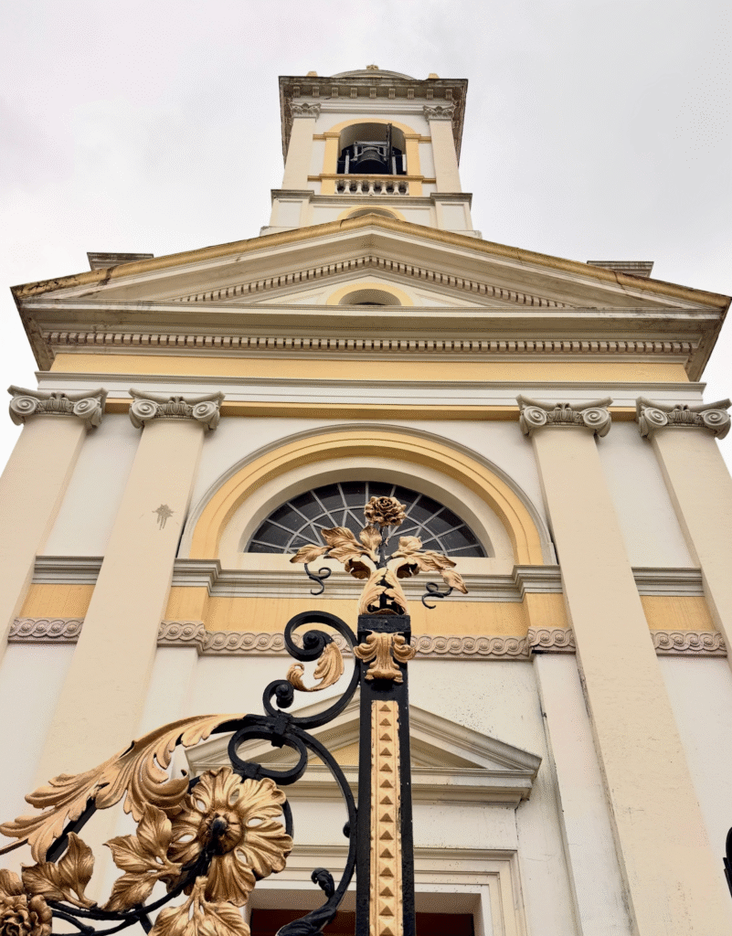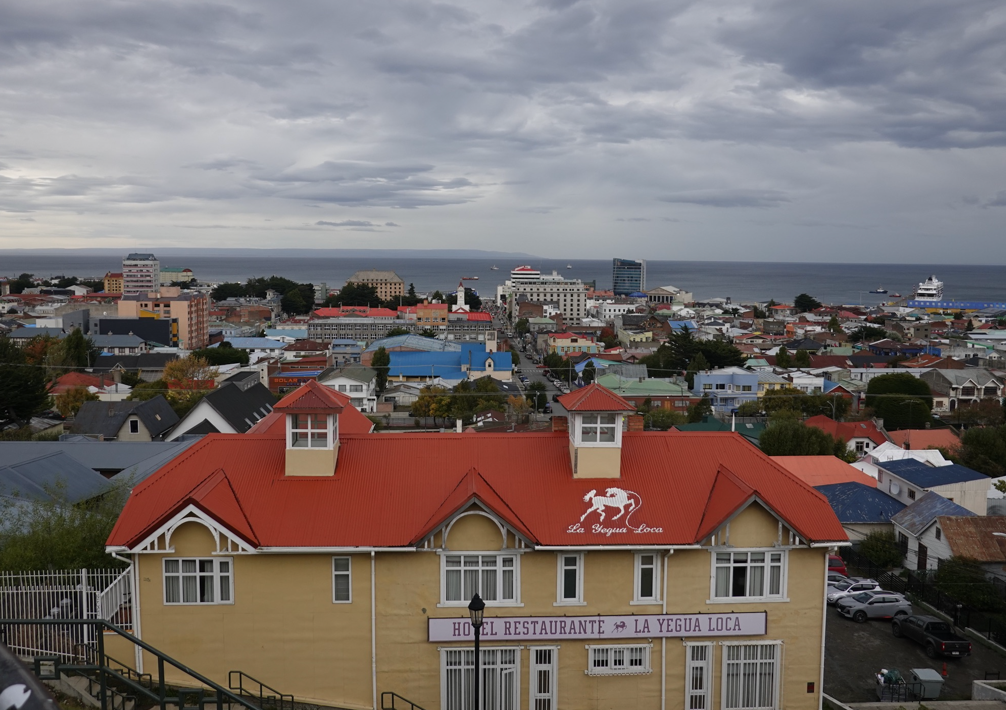 The Catholic Church in Puerto NatalesOur hotel in Puerto Natales. In the foreground are hallways that go between the different wings.Overlooking Punta ArenasAn “Italiano” – Chilean hotdog servers with guacamole, “mayonnaise”, and ketchup. Very popular in Patagonia.A snap shot of traditional Hain ceremony garb. The Hain ceremony was an initiation for young men by the indigenous people.