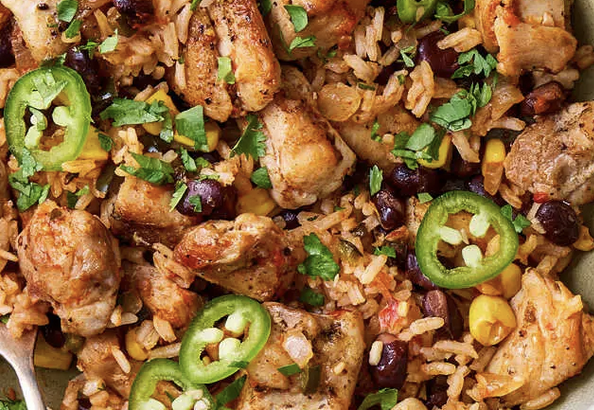 This colorful and satisfying one-pot dish is a variation on classic arroz rojo and makes it a complete meal by adding juicy chicken thighs.